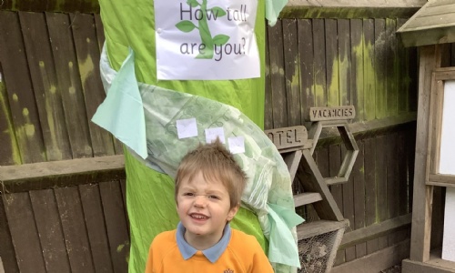 They used their Maths skills to measure their height against the towering beanstalk and see how they compared.